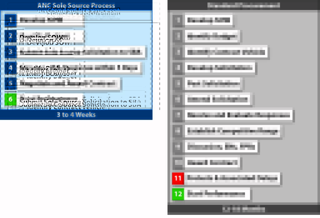 ANC sole source procurements provide the Government with numerous advantages in creating agile and scalable contracting solutions by allowing open discussions and direct negotiations at any phase of procurement following SBA approval. Additionally, only tribally-owned corporations such as ANCs can offer sole source procurements protected from protests.